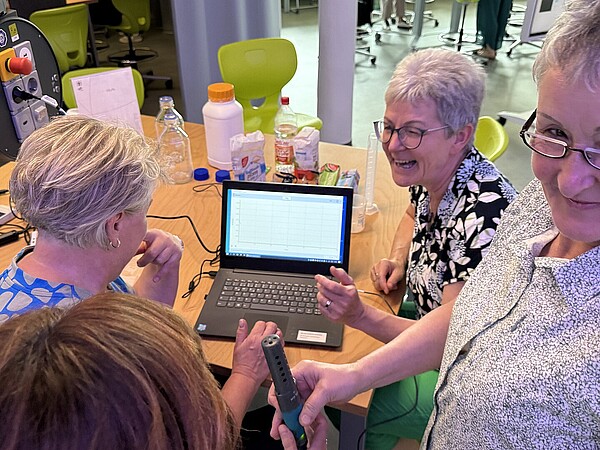 Beim Lehrerbesuch im Schülerlabor erhielten rund 20 Lehrkräfte der Oberschule Innenstadt Görlitz Einblicke in die Arbeit des DLR_School_Lab. Sie führten selbst Experimente durch und informierten sich über Einsatzmöglichkeiten im Unterricht.